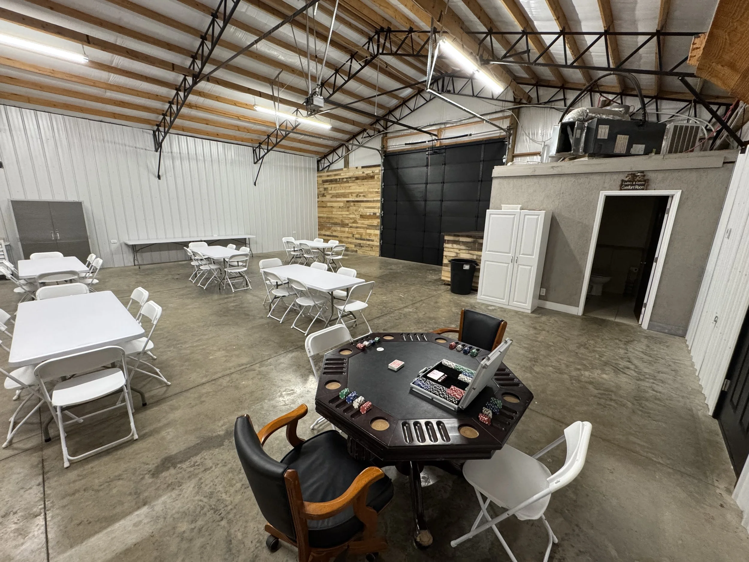 Our space is ideal for 30–70 guests indoors. With our new 1,600 sq. ft. expansion, you’ll have plenty of flexibility for games, dancing, or a kids’ zone.